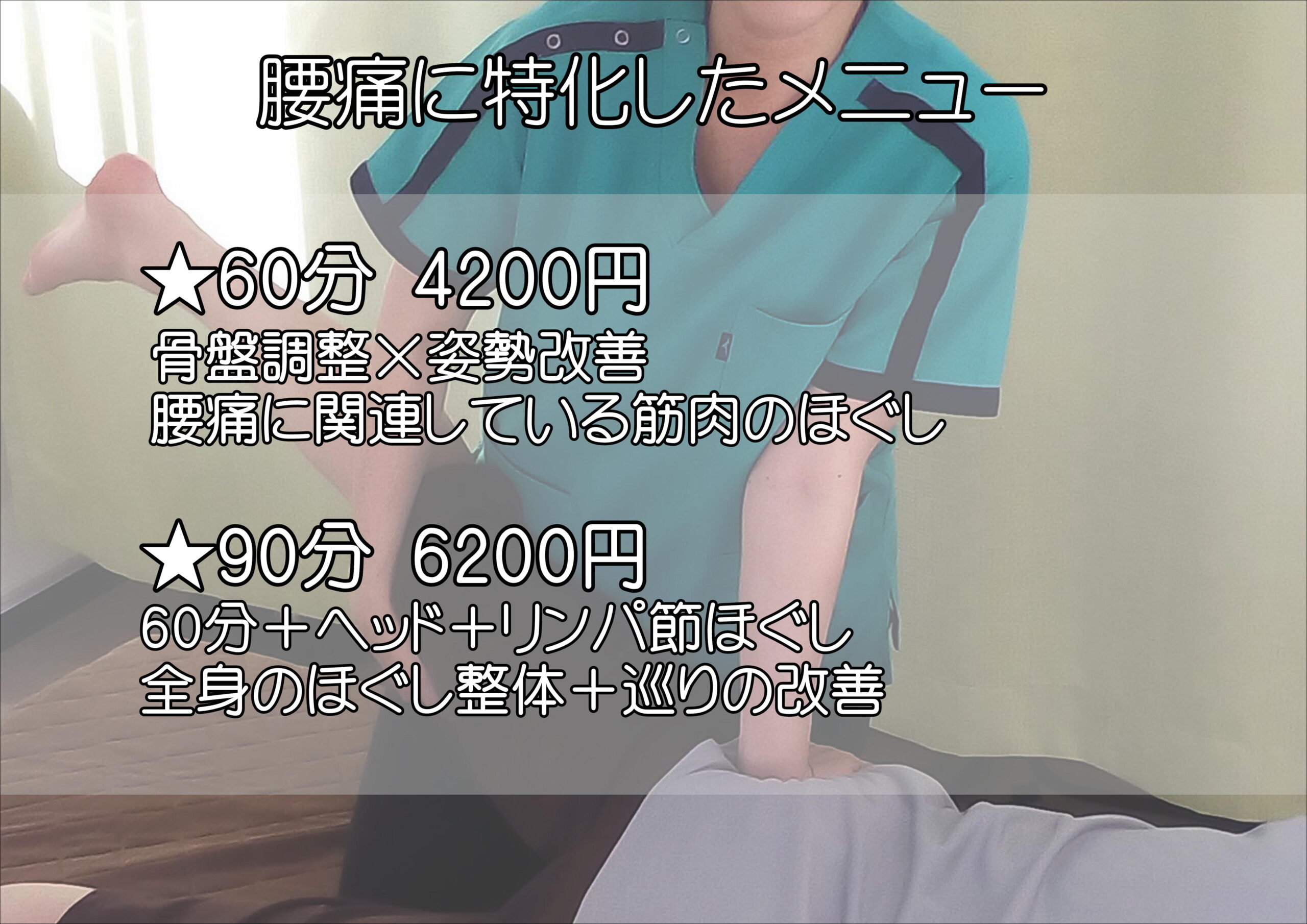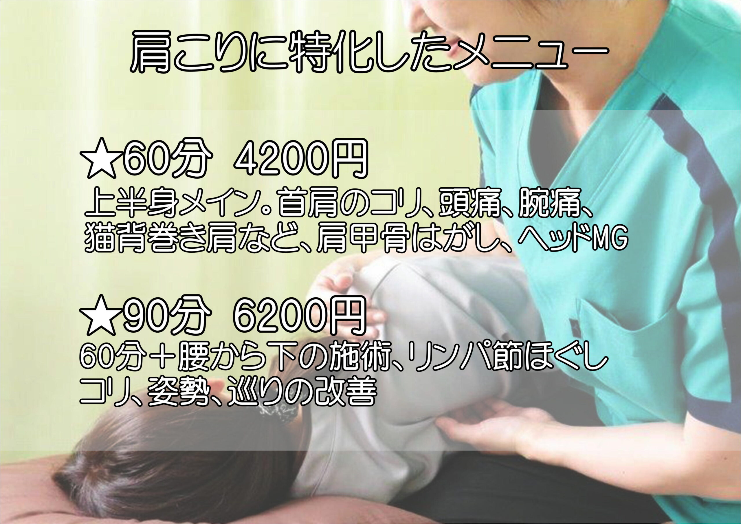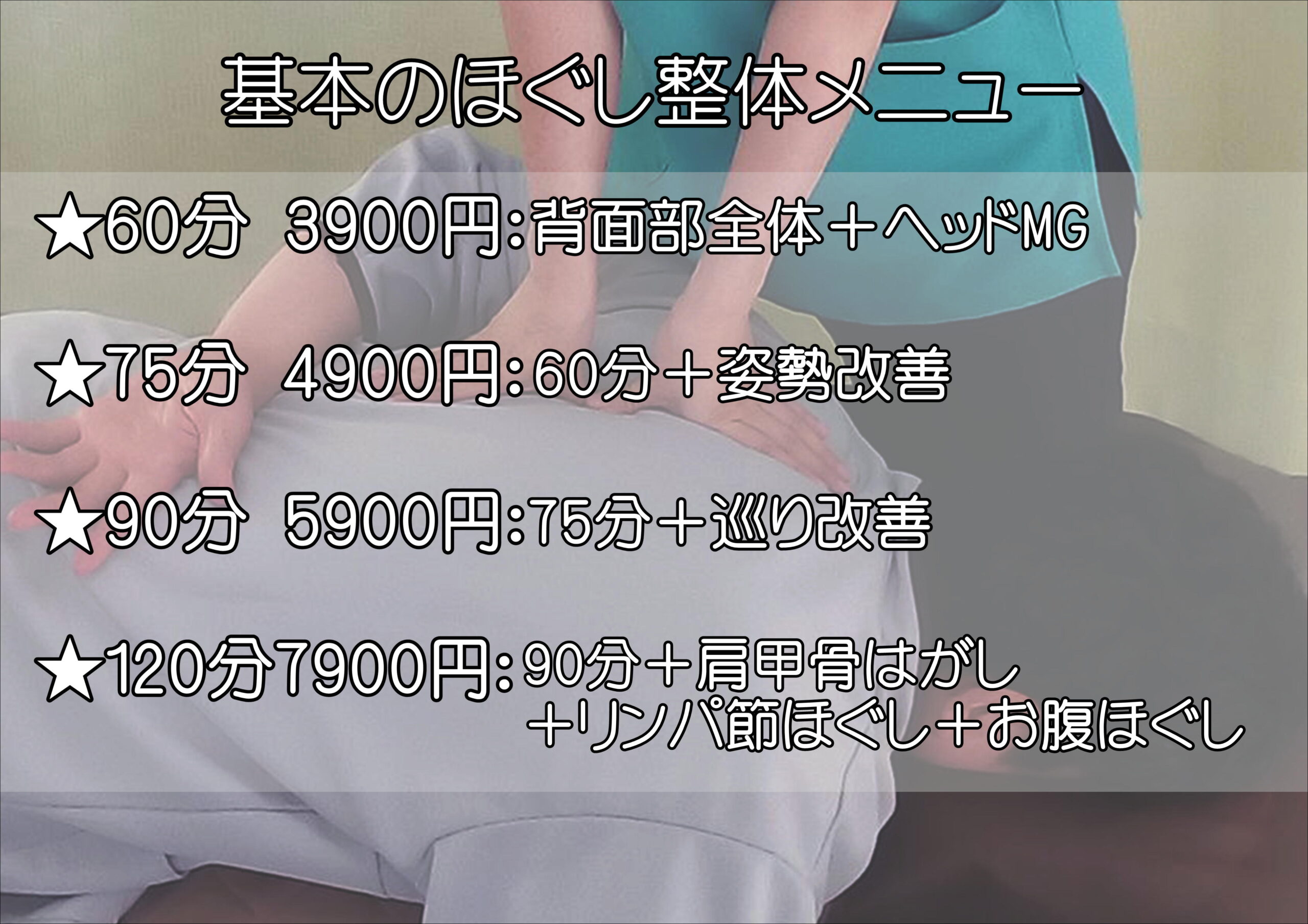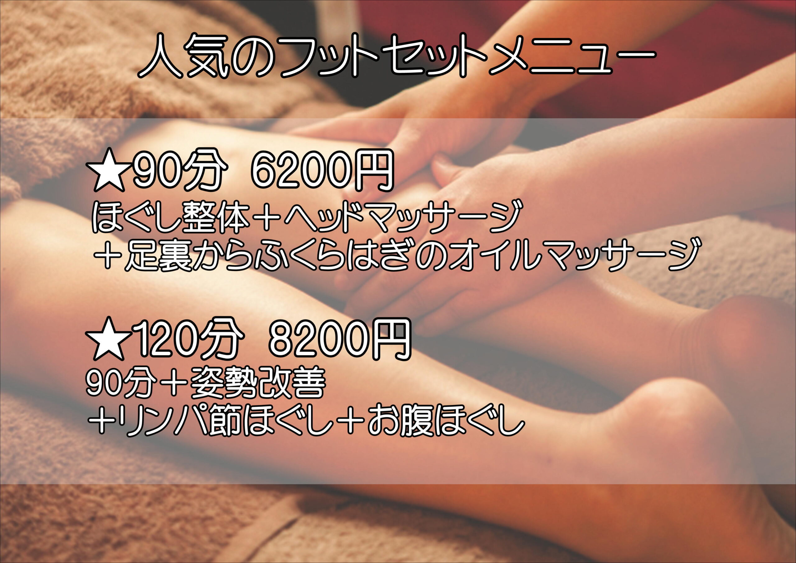 メニュー選びでお迷いになった時はご予算や施術時間を目安にしてご予約下さいませ。